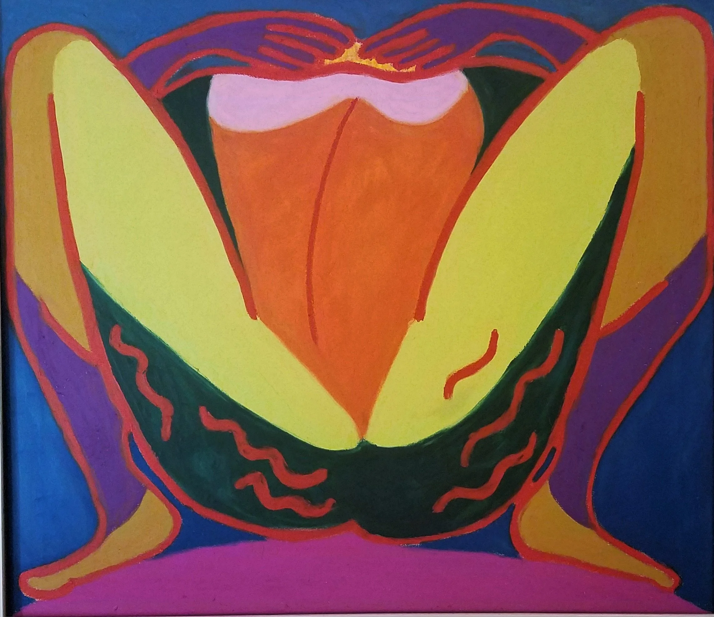 I am drawn to neon lights, strong bodies, soft boys, secret histories, bimbos, good fences, boldness, tiny treasures and big bellies. Whether based in reality or fiction a queer presence is felt as a unifying thread in my work. Queerness isn’t any one thing, it exists in multitudes. It’s all the ways we reclaim autonomy over our stories as individuals.